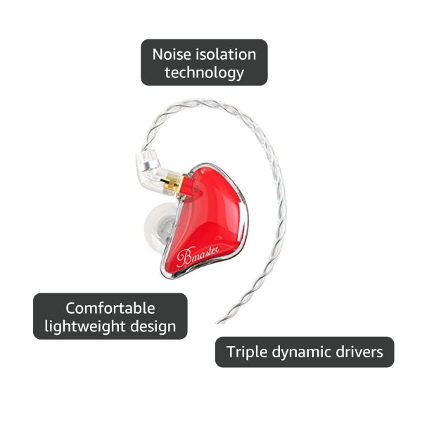Bmaster triple drivers pro in ear monitors are noise isolating and optimized for deep bass.